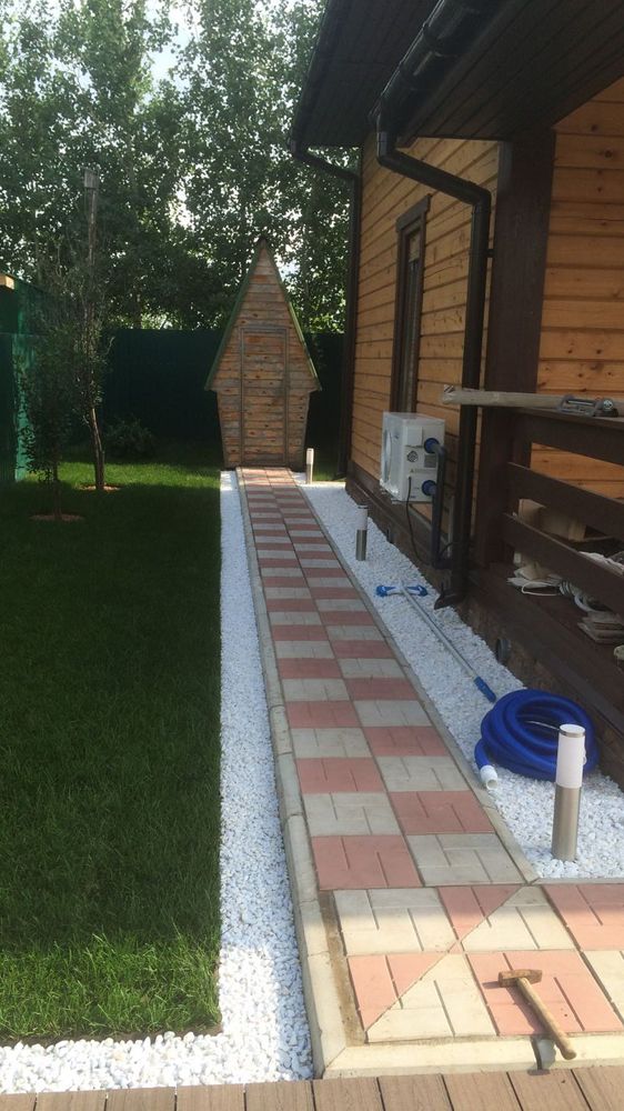 - мощение дорожек, укладку тротуарной плитки, монтаж террасной доски;