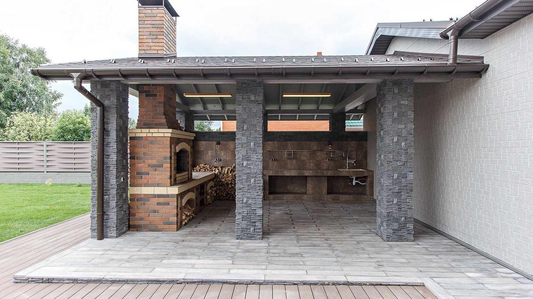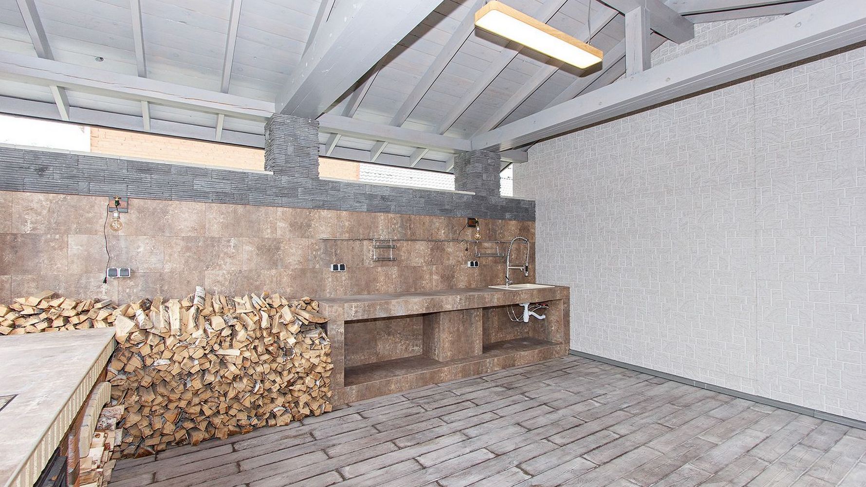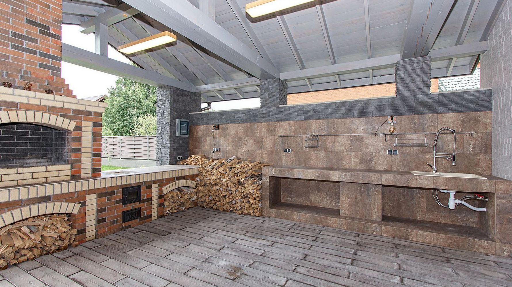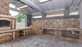 - заливку фундамента, подготовку подушки под зону барбекю;